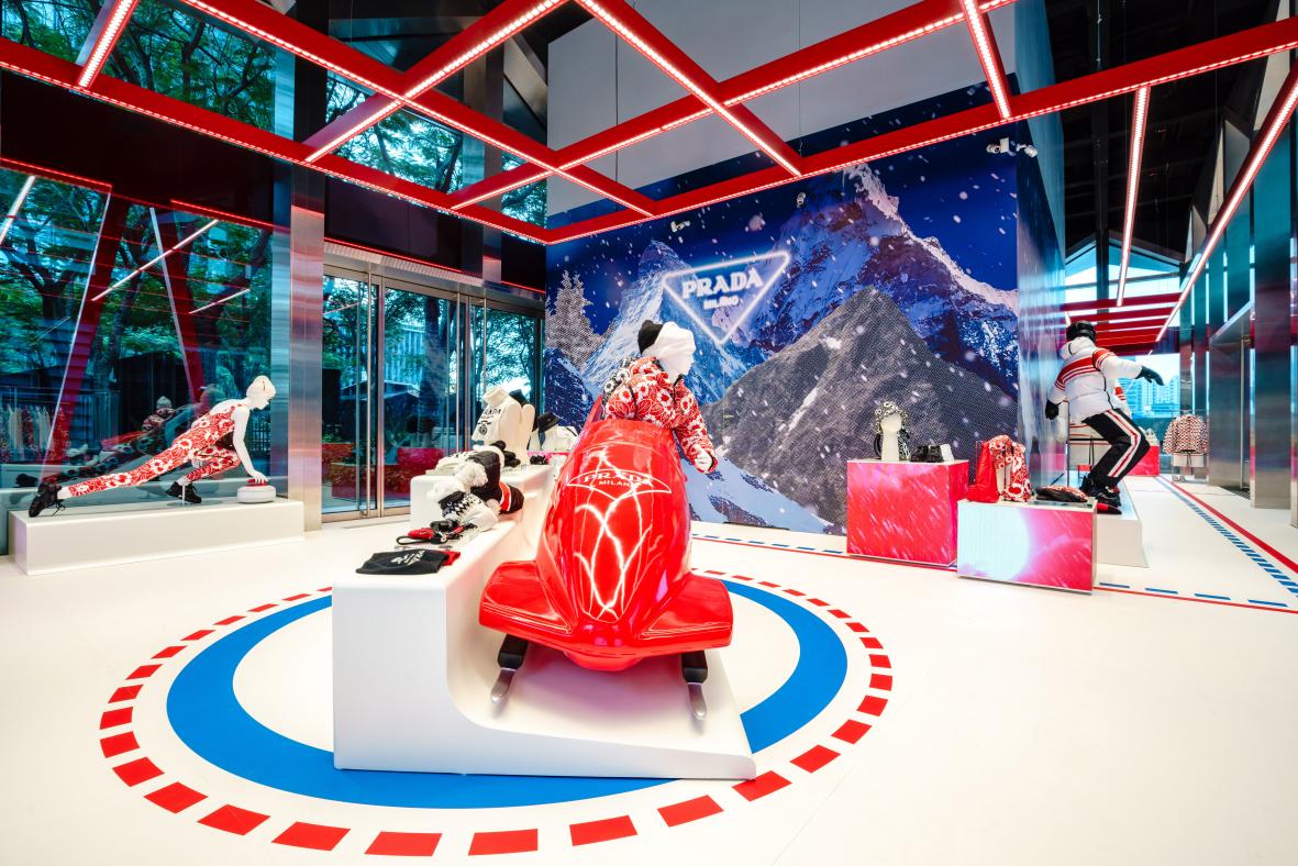 冬季運動是充滿活力和高水平競技精神的集中體現(xiàn)。經(jīng)過Prada標志性風格的煥新演繹,冬季運動為“冰上普拉達”限時店提供了靈感來源:一個展示戶外運動熱情、充滿挑戰(zhàn)、崇尚團隊協(xié)作、體現(xiàn)高速魅力的個性原創(chuàng)空間。