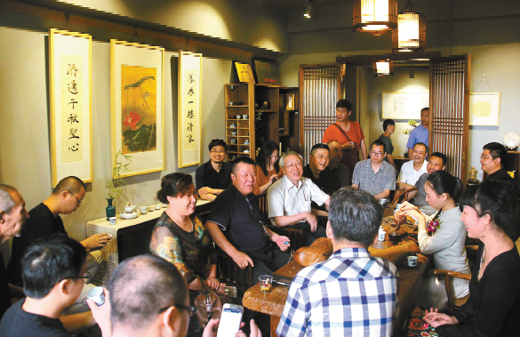 “現(xiàn)代人越來越注重生活美學,這次的展覽很貼近生活,我親眼見證這個書畫展的準備全過程,這些書畫家們既是內容撰寫者,又是書畫創(chuàng)作者,還是設計師和裝潢師。他們親自裁剪懸掛,布置調整,茶和書畫文化結合起來,剛好與善濟堂茶禪會館作為大眾服務的生活美學體驗館的理念不謀而合?!鄙茲貌瓒U會館女主人成潔曼告訴記者。