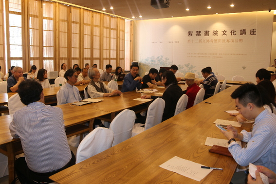 當(dāng)天下午,知名文化學(xué)者王魯湘,漢聲雜志社總策劃、民俗學(xué)者黃永松、國(guó)際著名藝評(píng)人兼策展人張頌仁等,采用文化雅集形式、以“從書(shū)院到文房”為主題,就書(shū)院的文化精神體現(xiàn)及其對(duì)當(dāng)代文化生活的影響,書(shū)院教育對(duì)社會(huì)全面發(fā)展的意義等問(wèn)題進(jìn)行深入探討。