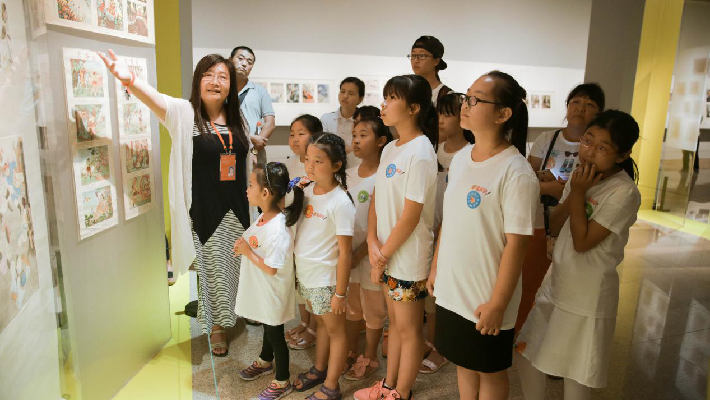 開營當天,孩子們還參觀了中國美術(shù)館《故事繪》連環(huán)畫展,中國美術(shù)館志愿者教員為環(huán)衛(wèi)子女介紹了中國美術(shù)館的歷史以及文明觀展禮儀。