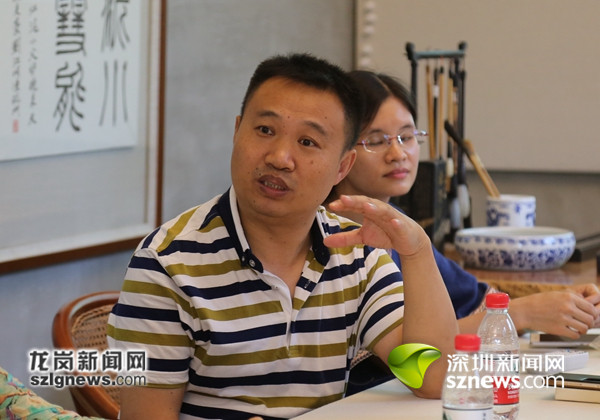 當(dāng)天的講堂中,結(jié)合書法主題,李靜與聽課者圍坐一桌,以十分親切自然的方式與龍崗書法愛好者進(jìn)行了交流。從書法的概念內(nèi)涵,到書法由古至今的發(fā)展歷程,再到書法創(chuàng)作的理念精髓,李靜深刻剖析了書法的基本含義,深入淺出講解了書法中的歷史因子。在現(xiàn)場(chǎng)聽課的書法愛好者們聽得認(rèn)真,課后還與李靜進(jìn)行了深入的交流。
