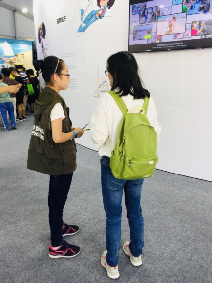 園芳姐姐現(xiàn)場和小記者講解采訪要領