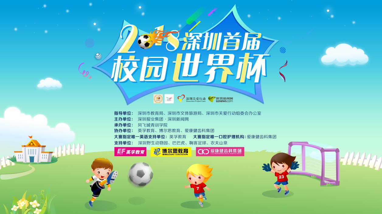為貫徹“普及+提高”的校園足球方針,普及、傳播深圳校園足球,推動(dòng)校園足球工作健康發(fā)展。由深圳市教育局、深圳市文體旅游局、深圳市關(guān)愛(ài)行動(dòng)組委會(huì)辦公室指導(dǎo),深圳新聞網(wǎng)主辦,風(fēng)飛城青訓(xùn)學(xué)院承辦的2018深圳首屆校園世界杯將于2018年7月10日-15日在深圳市仙桐體育公園足球場(chǎng)舉行。