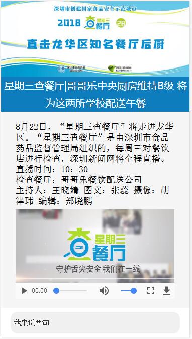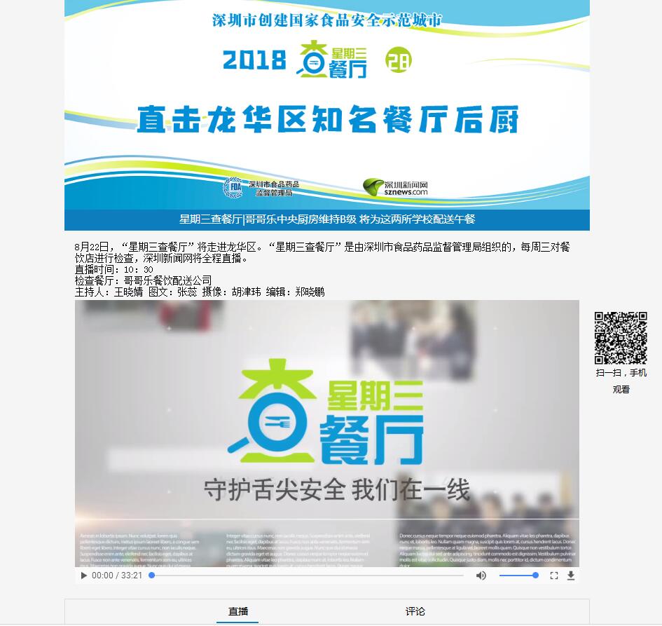 “星期三查餐廳”節(jié)目組采用深圳新聞網(wǎng)直播平臺,記者使用手機或攝像機進(jìn)行拍攝,照片、直播視頻、文本內(nèi)容等回傳后方編輯,編輯在直播平臺上進(jìn)行內(nèi)容整理,將執(zhí)法行動全程進(jìn)行視頻+圖文全程直播。網(wǎng)友無需下載任何客戶端,可通過Internet直接在PC、移動客戶端等設(shè)備上實時觀看執(zhí)法過程,并能在線對直播內(nèi)容進(jìn)行評論。
