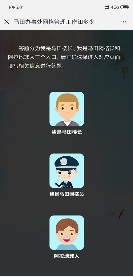 隨著當(dāng)前光明新區(qū)經(jīng)濟(jì)和社會(huì)的飛速發(fā)展,網(wǎng)格巡查管理工作環(huán)境日趨復(fù)雜。為此,馬田辦事處以社區(qū)網(wǎng)格化為抓手,積極帶領(lǐng)業(yè)主、樓長(zhǎng)、住戶(hù)主動(dòng)參與到樓棟的管理和社區(qū)的建設(shè),使他們從小“家”邁向大“家”,家家參與、人人行動(dòng),讓安全文明新風(fēng)形成常態(tài),營(yíng)造生機(jī)勃勃、欣欣向榮的社會(huì)氛圍,在馬田轄區(qū)打造共建共治共享社會(huì)治理格局。“馬田辦事處網(wǎng)格管理工作知多少”線上有獎(jiǎng)競(jìng)答活動(dòng),由光明新區(qū)馬田辦事處主辦,馬田社區(qū)網(wǎng)格管理中心承辦。此次答題活動(dòng)自8月15日9點(diǎn)啟動(dòng),截止至8月19日23點(diǎn)59分,為期5天。答題分為“我是網(wǎng)格員”入口、“我是樓長(zhǎng)”入口和“阿拉地球人”三個(gè)入口。通過(guò)樓長(zhǎng)入口進(jìn)入的用戶(hù),需輸入馬田轄區(qū)樓長(zhǎng)身份證或港澳通行證號(hào)方可答題,網(wǎng)格員入口則需輸入馬田轄區(qū)網(wǎng)格員有效證件號(hào)碼進(jìn)入對(duì)應(yīng)的答題頁(yè)面。在每次答題時(shí),答題系統(tǒng)將隨機(jī)抽取10道題,用戶(hù)須在120秒的時(shí)間內(nèi)完成,答對(duì)8題以上即視為闖關(guān)成功,可獲得一次抽獎(jiǎng)機(jī)會(huì),有機(jī)會(huì)獲得100元、50元、10元、5元、2元不等的微信紅包。