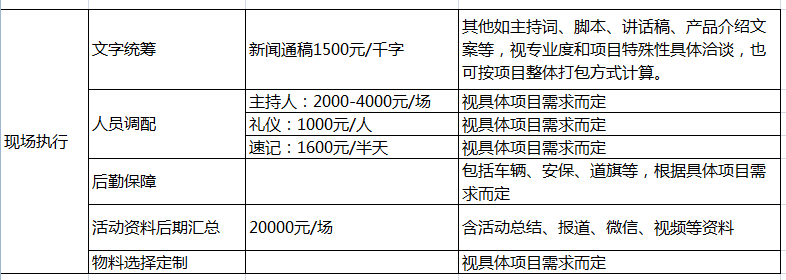 3、后勤保障:舉辦大型活動(dòng)時(shí),為了保障嘉賓安全,渲染現(xiàn)場(chǎng)氣氛,通常需要有一系列的車(chē)輛、安保、道路指引旗幟等工作。深圳新聞網(wǎng)擁有豐富的大型現(xiàn)場(chǎng)活動(dòng)把控經(jīng)驗(yàn),特別是與相關(guān)部門(mén),如城管、公安、交通等主管職能機(jī)構(gòu)溝通、協(xié)調(diào)、策劃的能力,保障活動(dòng)安全,萬(wàn)無(wú)一失。具體費(fèi)用需要依據(jù)項(xiàng)目的規(guī)模、時(shí)長(zhǎng)、等級(jí)來(lái)具體商議。