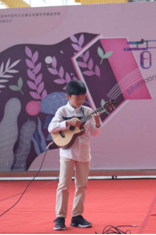 深圳10歲的小朋友陳厚坤首先帶來一曲《While my guitar gentlely weeps》,這首曲目是世界最負盛名的演奏家Jake Shimabukuro的成名作,難度可想而知,陳厚坤小朋友穩(wěn)定嫻熟的演奏,為音樂會拉開了序幕。