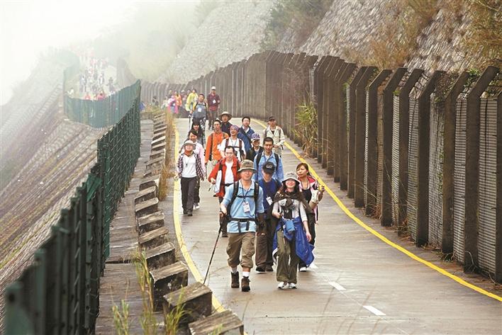 ▲參加深圳百公里活動(dòng)的市民在徒步中。