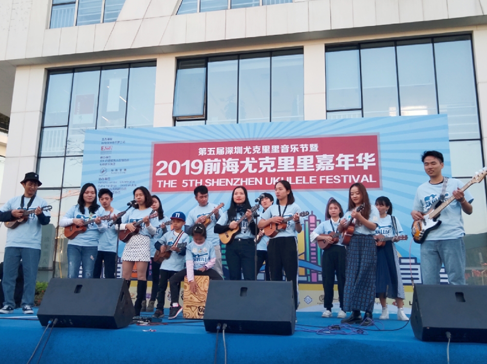 深圳第五屆尤克里里音樂(lè)節(jié)暨“前海尤克里里嘉年華”舞臺(tái)位于前海深港青年夢(mèng)工場(chǎng)夢(mèng)廣場(chǎng),共有100多名的深港尤克里里愛(ài)好者,學(xué)校社團(tuán),企業(yè)社團(tuán)為前海帶來(lái)了持續(xù)四個(gè)小時(shí)的尤克里里音樂(lè)盛宴。