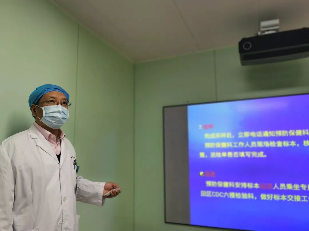 科室副主任、共產(chǎn)黨員靳淑雁已懷孕30多周,她挺著大肚子,忍著妊娠期疲勞,深入各個科室站著主持新冠病毒咽拭子采樣規(guī)范和送檢流程的培訓(xùn),每一場她都認(rèn)真講解,內(nèi)容清晰,令在場的醫(yī)護(hù)人員十分感動。