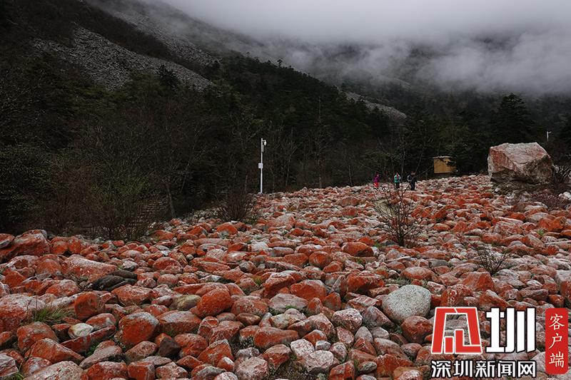 紅石對(duì)生長(zhǎng)環(huán)境的要求極為苛刻,空氣潔凈度、濕度、水的清潔度都會(huì)影響它們的生長(zhǎng)。雅家梗一代低碳富氧的空氣、冰山融雪的溪流、森林茂密的植被,為紅石的生長(zhǎng)繁衍提供了最理想的環(huán)境。在這里,紅石密布于近百米寬的河谷里,不同的季節(jié),不同的天氣狀況下,幻化出不同的色彩,呈現(xiàn)朝紅夕褚的奇異景觀。