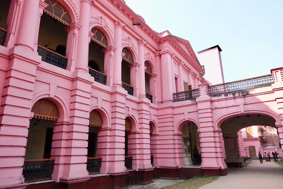 距孟加拉恒河渡口不遠(yuǎn)的地方有一座粉紅色宮殿式的豪華建筑。那是1872年一位名叫阿赫桑曼濟(jì)勒的地主在法國(guó)人留下的倉(cāng)房基礎(chǔ)上改建的私邸,后來(lái)曾在一次龍卷風(fēng)襲擊時(shí)受創(chuàng)。李仁奇 攝