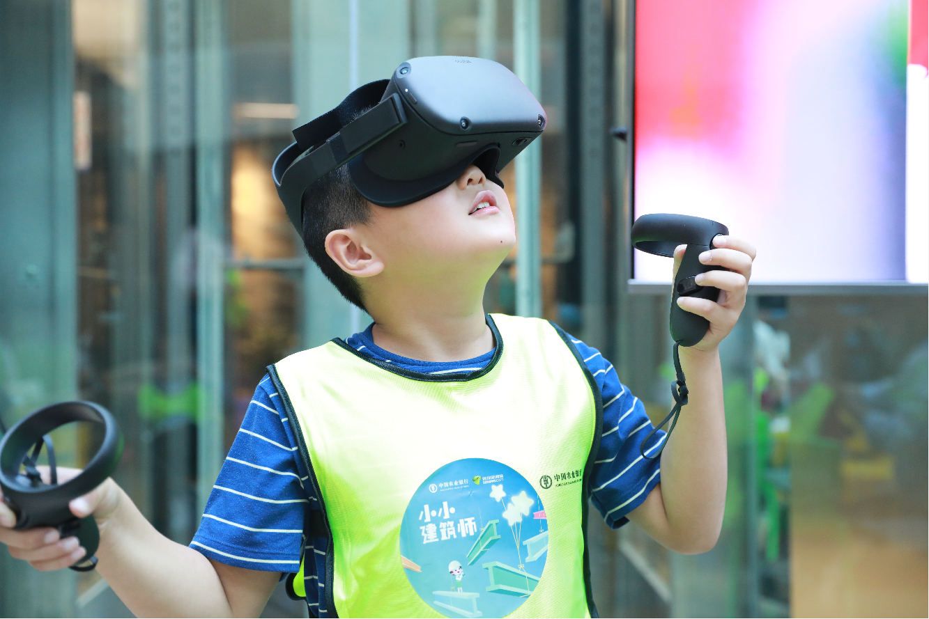 博物館中最讓小朋友流連忘返的當屬互動廳。孩子們爭先恐后的玩著鋼結構爆破游戲。通過VR互動,身臨其境的感受著站在600米高度的深圳平安金融中心頂層施工的情形?!盎怼变摻Y構設計師、建造師,完成鋼結構建筑的設計、制造與安裝全過程,并獲得《鋼結構小小工程師星級考核》證書。