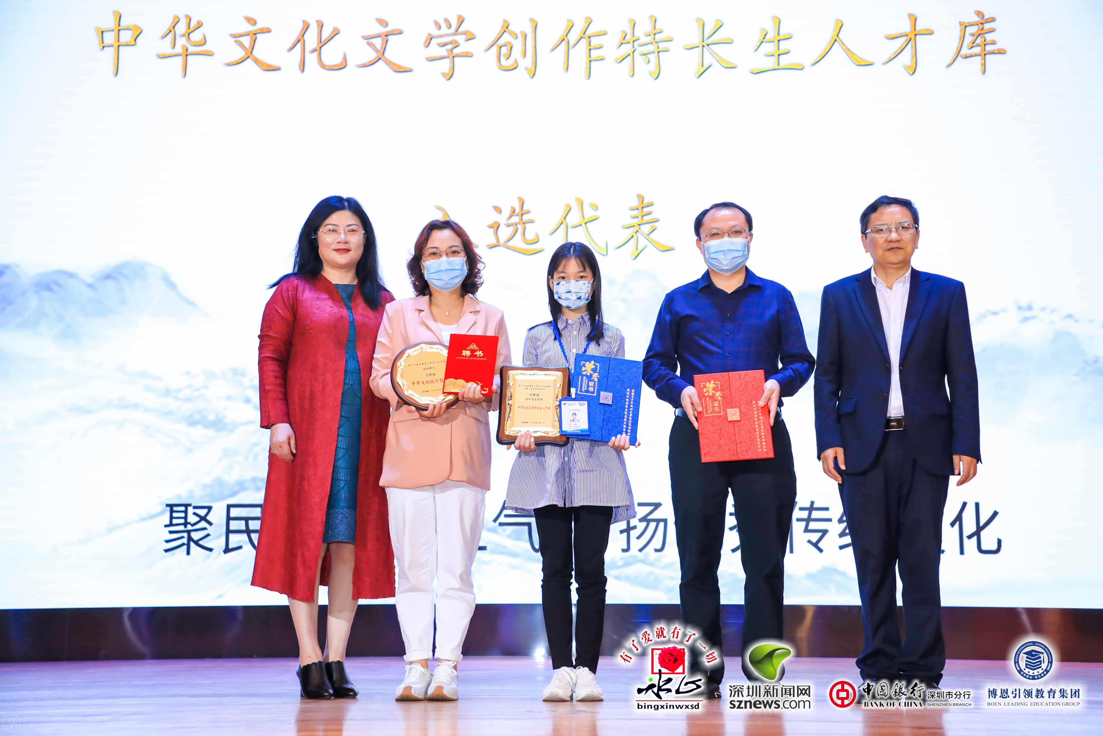 對(duì)入選“中華文化現(xiàn)行倡導(dǎo)者”“中華文化文學(xué)特長(zhǎng)生人才庫(kù)”和“深網(wǎng)小記者”的代表劉夢(mèng)妮進(jìn)行頒獎(jiǎng)?lì)C證