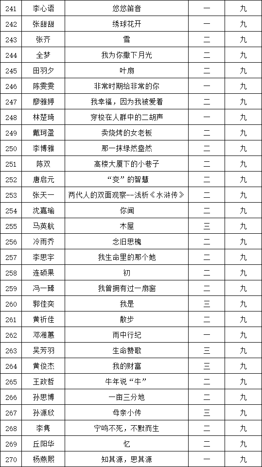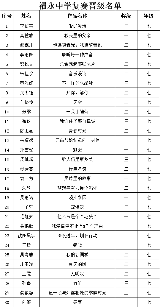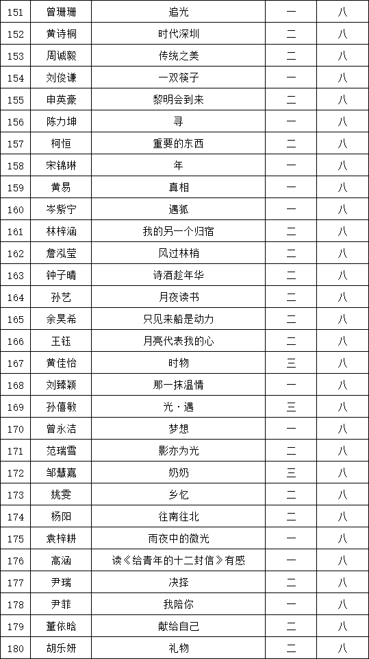 自2021年1月,活動征稿啟動以來,獲得了深圳市廣大中小學(xué)生、教師、文學(xué)愛好者的熱烈響應(yīng)積極參與,吸引了深圳百余所學(xué)校的上萬人關(guān)注報(bào)名?,F(xiàn)公布福永中學(xué)晉級復(fù)賽名單如下:
