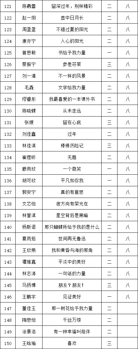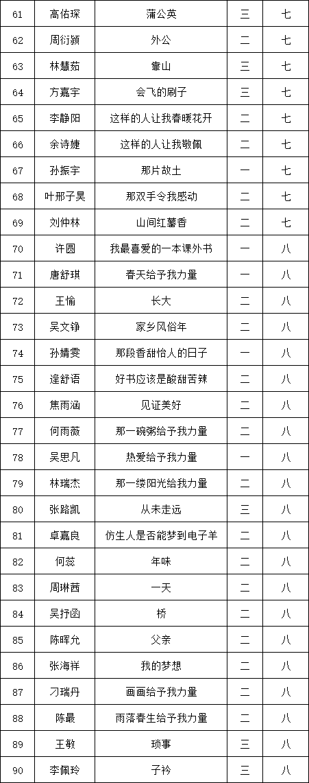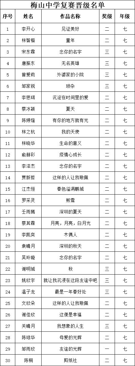 自2021年1月,活動(dòng)征稿啟動(dòng)以來(lái),獲得了深圳市廣大中小學(xué)生、教師、文學(xué)愛(ài)好者的熱烈響應(yīng)積極參與,吸引了深圳百余所學(xué)校的上萬(wàn)人關(guān)注報(bào)名?,F(xiàn)公布福田區(qū)梅山中學(xué)晉級(jí)復(fù)賽名單如下: