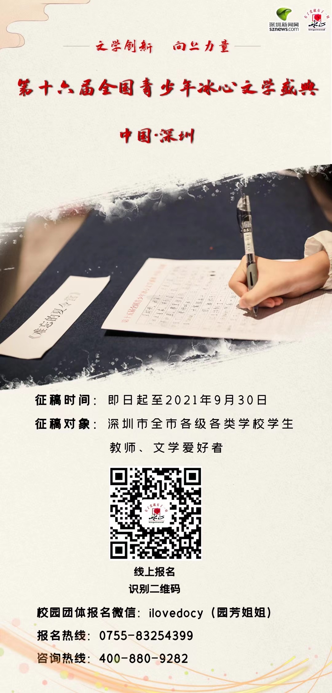 全國(guó)青少年冰心文學(xué)盛典組委會(huì)中國(guó)·深圳官網(wǎng)及公眾號(hào)發(fā)布