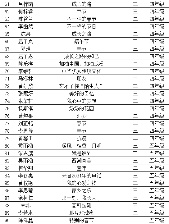 自2021年1月,活動(dòng)征稿啟動(dòng)以來(lái),獲得了深圳市廣大中小學(xué)生、教師、文學(xué)愛(ài)好者的熱烈響應(yīng)積極參與,吸引了深圳百余所學(xué)校的上萬(wàn)人關(guān)注報(bào)名。現(xiàn)公布寶安區(qū)翻身實(shí)驗(yàn)學(xué)校(東校區(qū))晉級(jí)復(fù)賽名單如下: