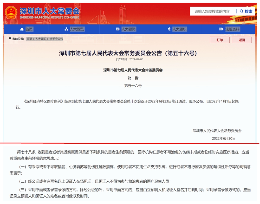 讀特客戶端·深圳新聞網(wǎng)2022年7月8日訊(記者 張玲 翁任瑩)7月5日,北京市盈科(深圳)律師事務(wù)所律師杜芹到深圳公證處,為自己做了一份生前預(yù)囑。這份生前預(yù)囑,有可能成為深圳首份公證的生前預(yù)囑。6月23日,深圳市人大常委會(huì)表決通過(guò)《深圳經(jīng)濟(jì)特區(qū)醫(yī)療條例》(以下簡(jiǎn)稱《條例》),該《條例》將于2023年1月1日起施行。深圳通過(guò)立法率先建立的“生前預(yù)囑制度”可謂一石激起千層浪,引發(fā)全國(guó)網(wǎng)友和各方持續(xù)關(guān)注。