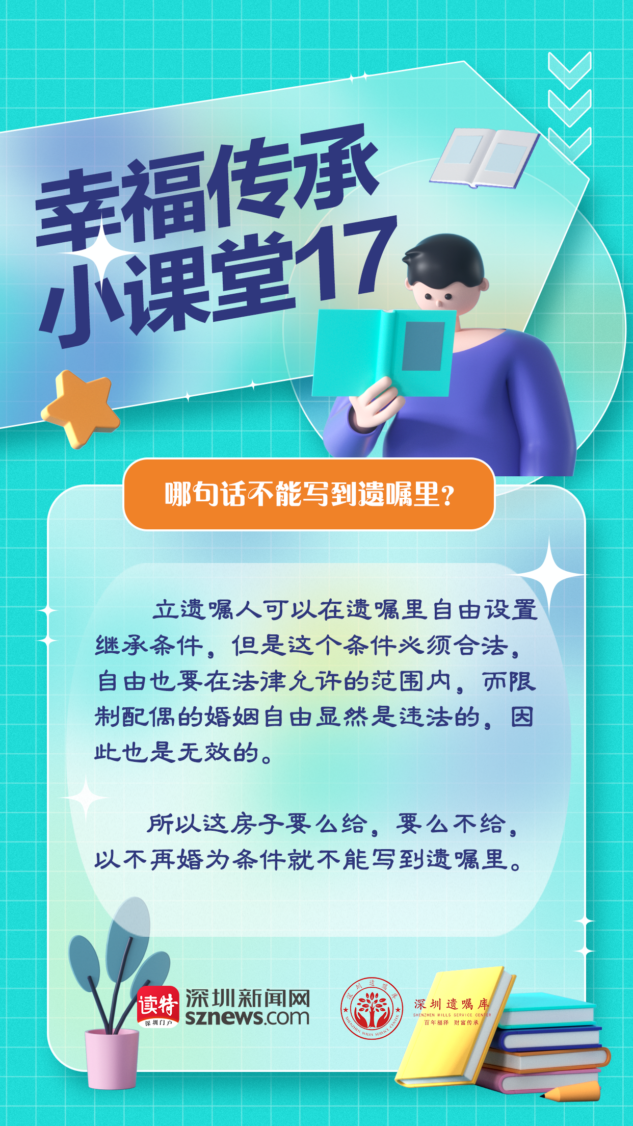 由深圳新聞網(wǎng)聯(lián)合廣東嘉得信律師事務(wù)所、深圳遺囑庫(kù)特別策劃的“幸福傳承小課堂”第17期就來(lái)說(shuō)說(shuō),哪些話不能寫到遺囑里。上述案例的老兩口考慮很周全,他們把各個(gè)銀行的存款都列了一個(gè)明細(xì)單,標(biāo)明了分配方式,哪一筆給兒子,哪一筆留給女兒,總體來(lái)說(shuō)兒女分到的財(cái)產(chǎn)都差不多。