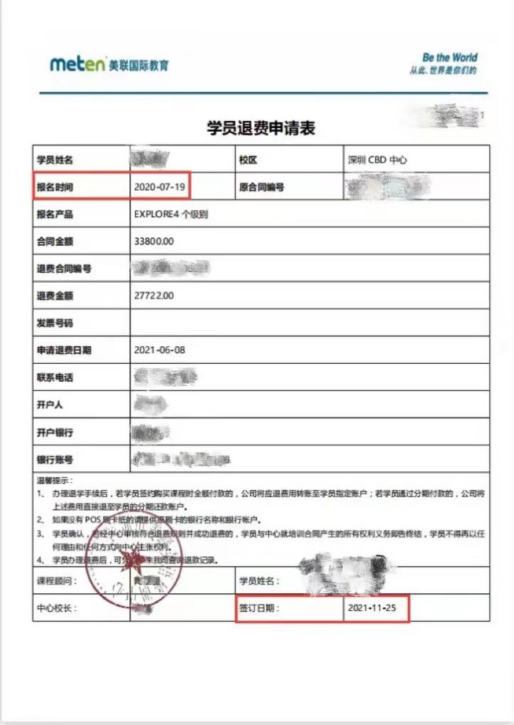 美聯(lián)英語(福田CBD中心) :商家答應(yīng)退款卻一拖再拖