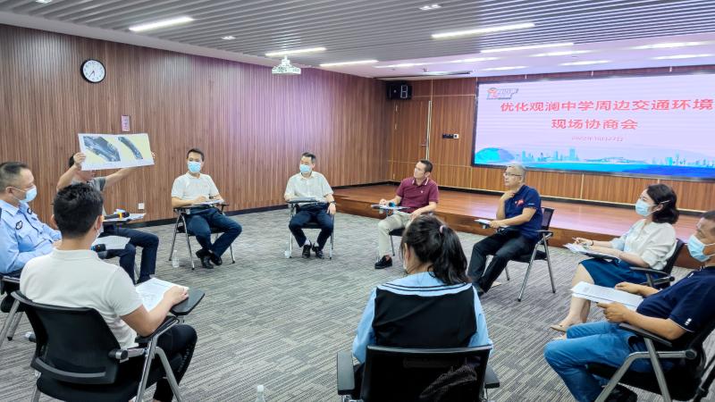 10月27日,謝文浩、居學(xué)成主持召開以“優(yōu)化觀瀾中學(xué)周邊交通環(huán)境”為主題的身邊事好商量協(xié)商會,應(yīng)邀而來的龍華區(qū)政協(xié)委員、社區(qū)居民代表、觀瀾中學(xué)教師代表和學(xué)生家長代表,針對優(yōu)化觀瀾中學(xué)交通環(huán)境問題提出訴求,如加快打通臨寶街、修復(fù)校園周邊破損路面、清晰描畫交通標(biāo)線、解決周邊車輛違停等訴求。