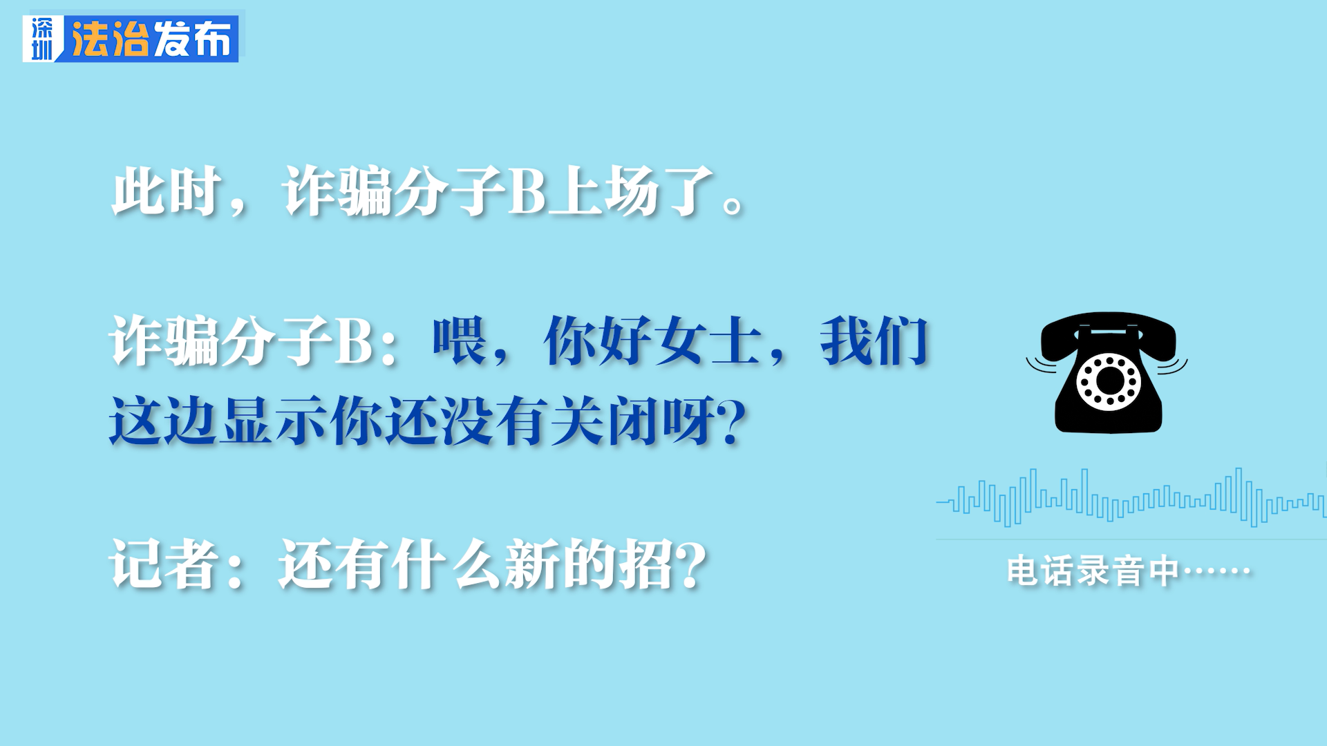 詐騙分子A:(語(yǔ)速很快)但是我們這邊系統(tǒng)顯示你沒(méi)有關(guān)閉成功?。∪绻P(guān)閉成功的話……