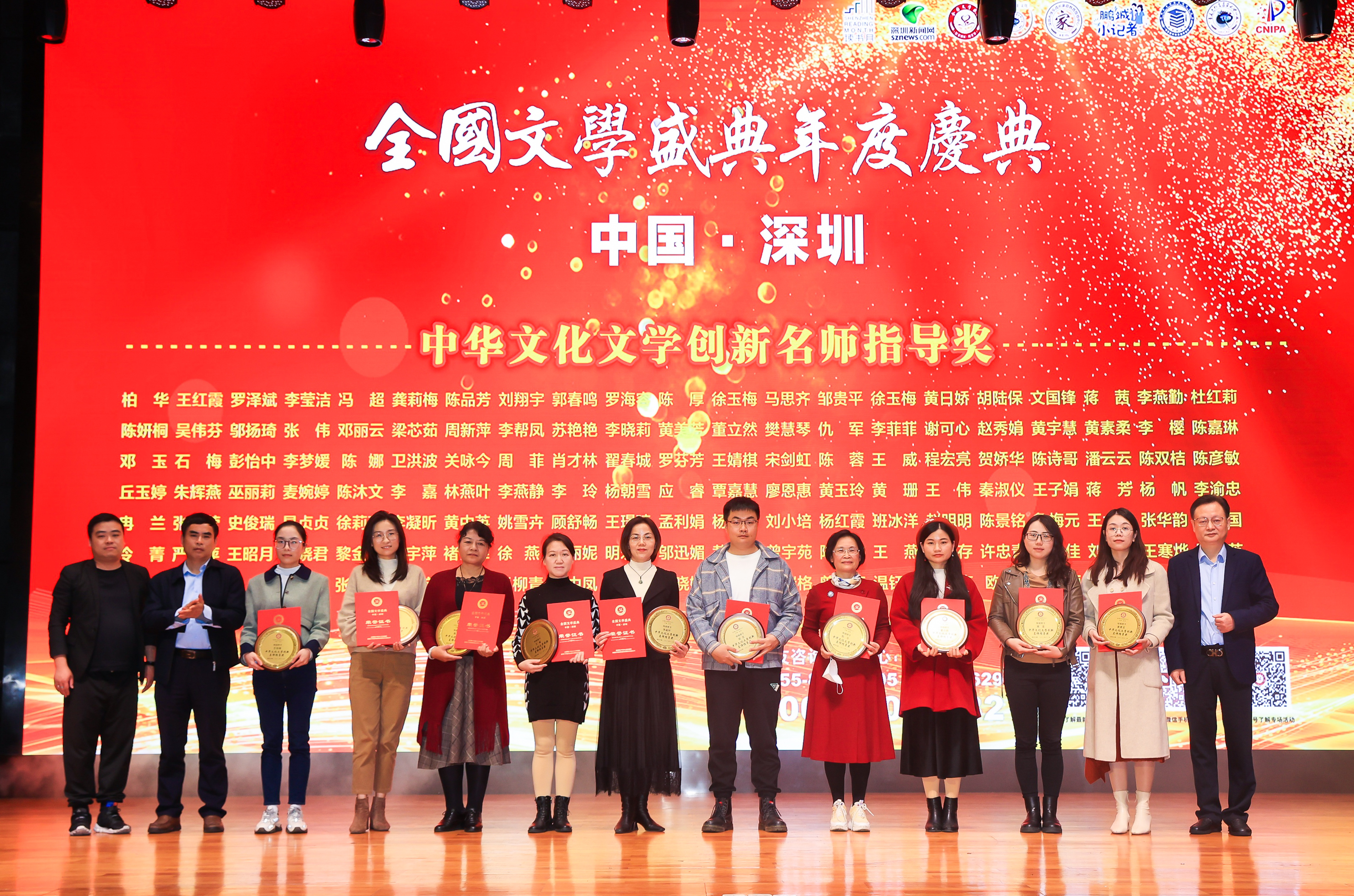 中華文化文學(xué)創(chuàng)新名師指導(dǎo)獎獲獎代表合影