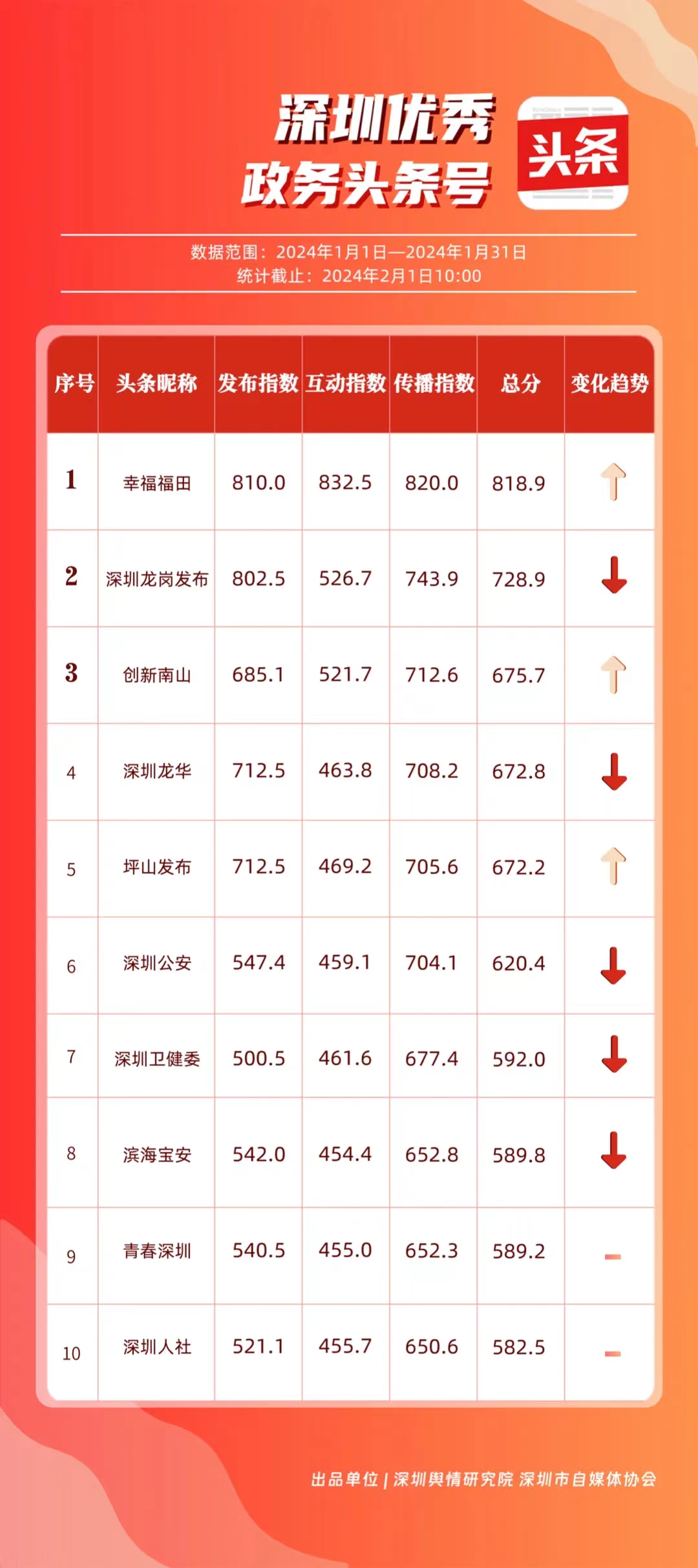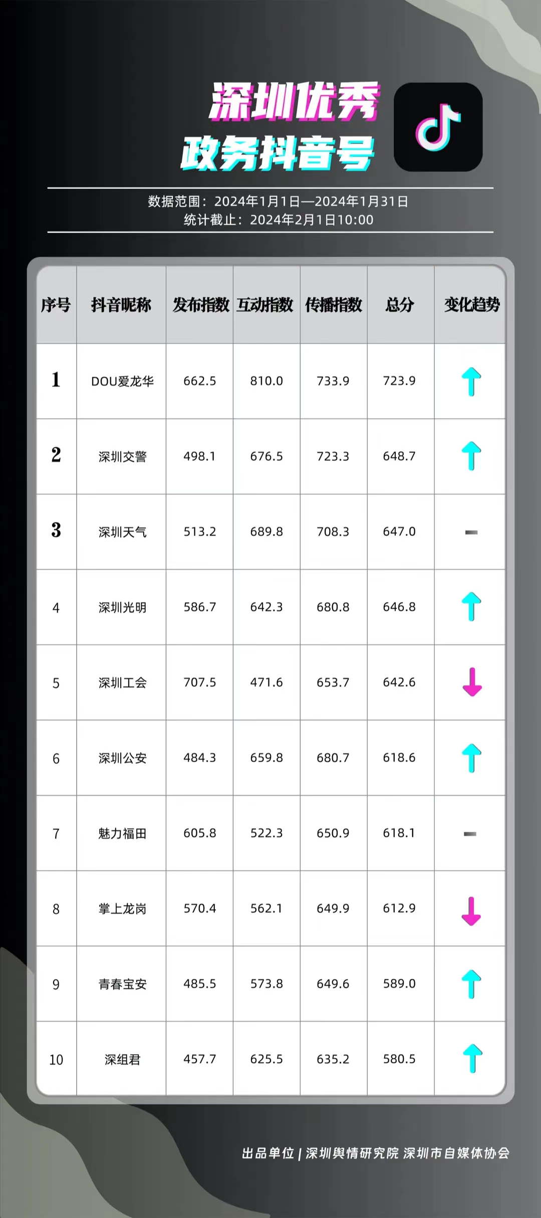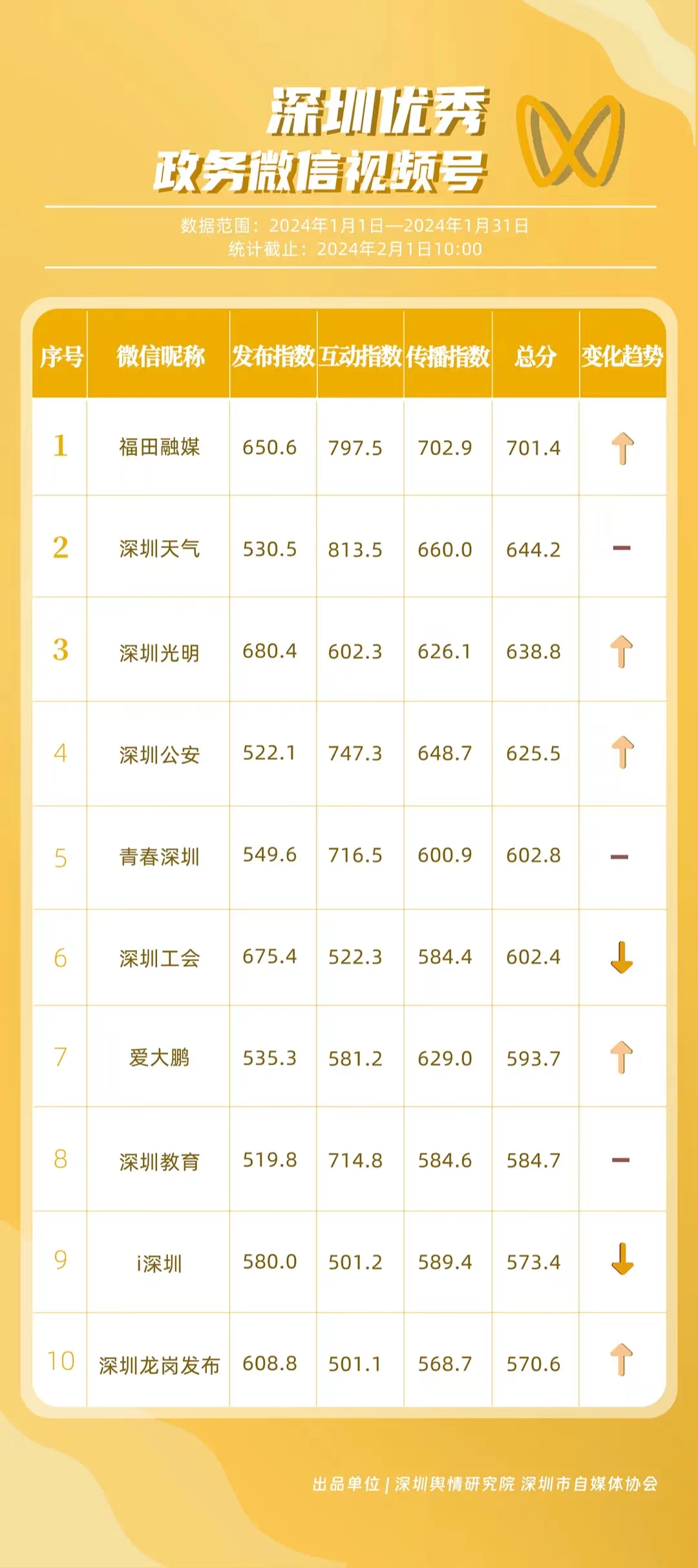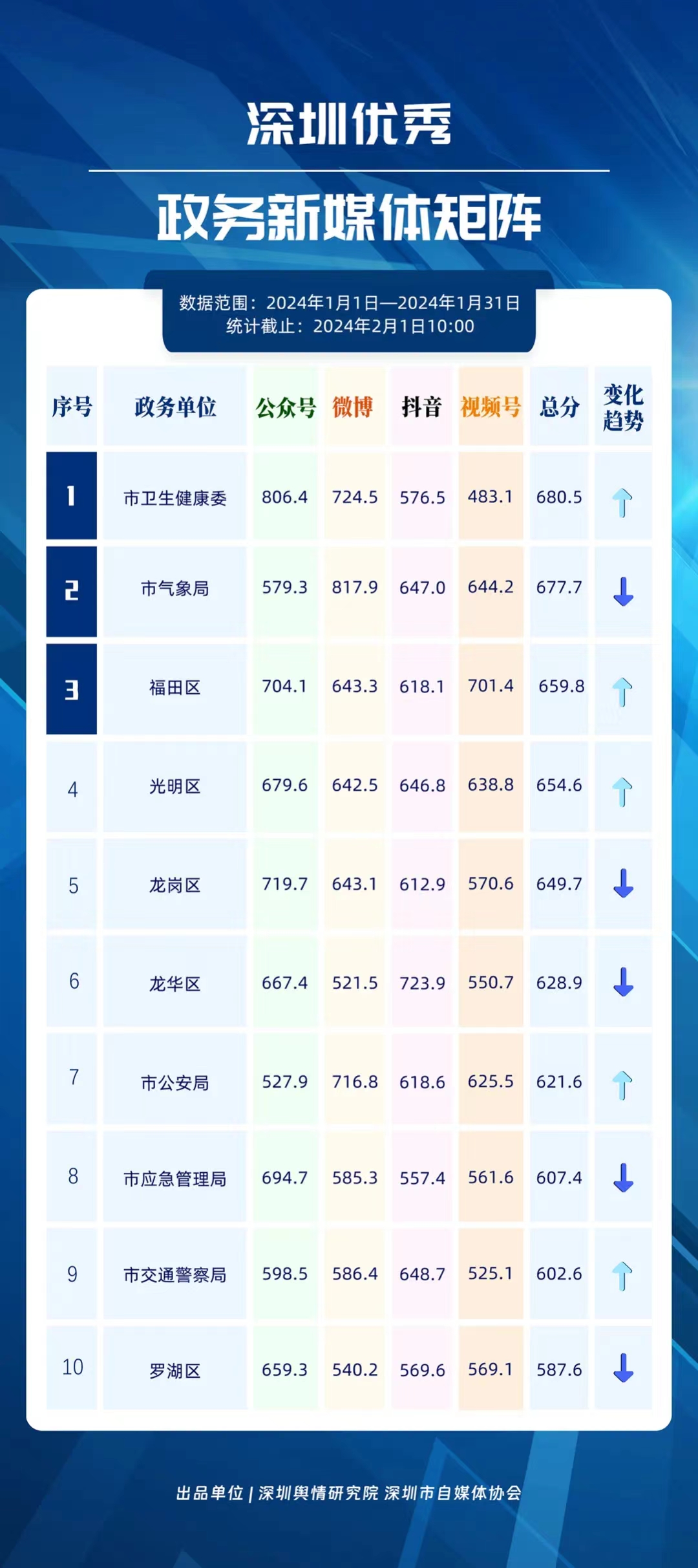 深圳新聞網(wǎng)2月9日訊(記者 陳曉君 實(shí)習(xí)生 張馳)2月8日,深圳輿情研究院、深圳市自媒體協(xié)會(huì)聯(lián)合推出《深圳優(yōu)秀政務(wù)新媒體矩陣》(2024年1月期),市衛(wèi)生健康委、市氣象局、福田區(qū)、光明區(qū)、龍崗區(qū)、龍華區(qū)、市公安局、市應(yīng)急管理局、市交通警察局、羅湖區(qū)的新媒體矩陣獲評(píng)“深圳優(yōu)秀政務(wù)新媒體矩陣”。這些矩陣在內(nèi)容發(fā)布、受眾互動(dòng)和信息傳播方面取得了較好成績,并在深圳政務(wù)新媒體規(guī)范有序發(fā)展進(jìn)程中發(fā)揮著積極作用。