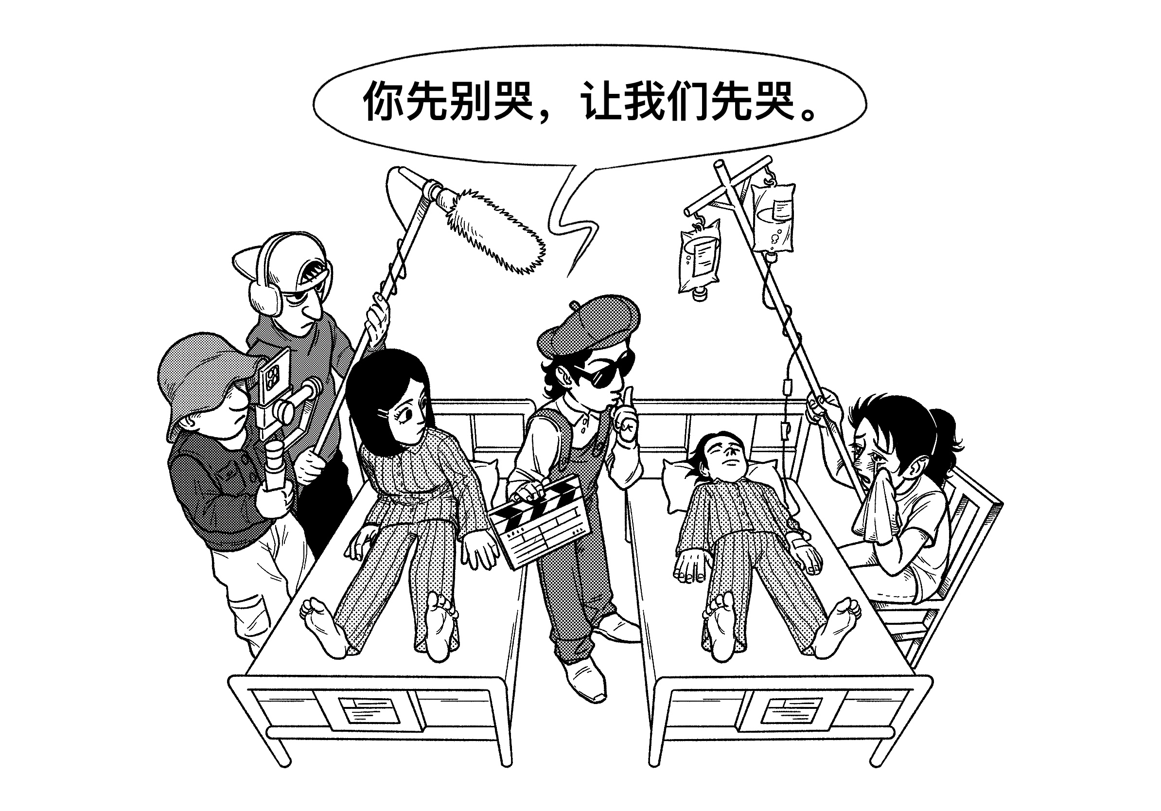 近日,某劇組在一家醫(yī)院ICU病房外拍攝短劇,竟讓患者家屬“哭小點(diǎn)聲”。迫使“真情”讓步“劇情”,這事里面多少有點(diǎn)“病情”。