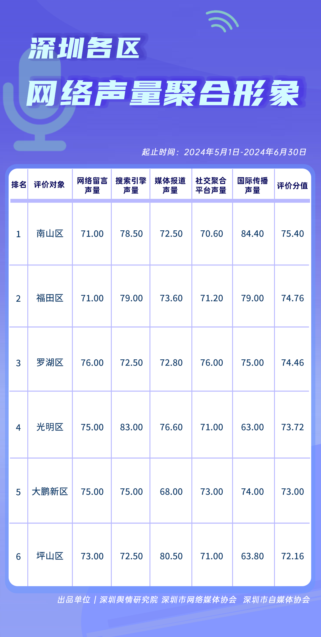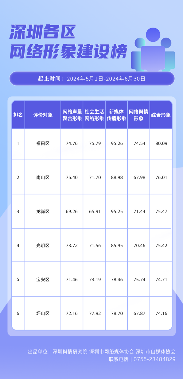 為全面評估深圳各區(qū)各單位網(wǎng)絡(luò)形象建設(shè)情況,助力各區(qū)各單位持續(xù)響應(yīng)居民對美好生活的期許,賦能城市高質(zhì)量發(fā)展,深圳輿情研究院、深圳市網(wǎng)絡(luò)媒體協(xié)會、深圳市自媒體協(xié)會聯(lián)合推出“深圳各區(qū)各單位網(wǎng)絡(luò)形象建設(shè)榜”,從網(wǎng)絡(luò)聚合聲量、留言互動成效、社會生活評價、輿情管理能力及新媒體傳播水平等方面,多維度分析深圳各區(qū)(含大鵬新區(qū)、深汕特別合作區(qū))、各市直單位(市直屬單位、直屬部門)的網(wǎng)絡(luò)形象建設(shè)成果,凸顯各區(qū)各單位的“共性”與“個性”。