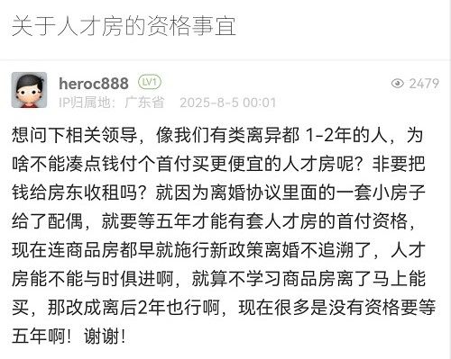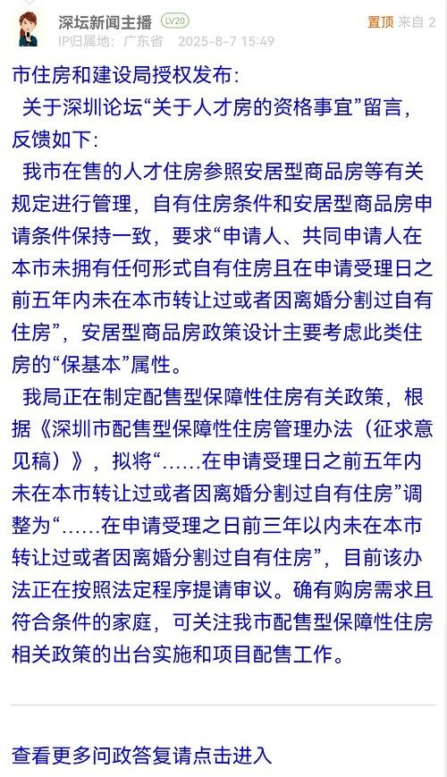 關于深圳論壇“關于人才房的資格事宜”留言,反饋如下: