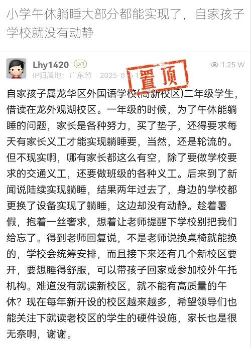 12. 帖文《小學午休躺睡大部分都能實現(xiàn)了,自家孩子學校就沒有動靜》
