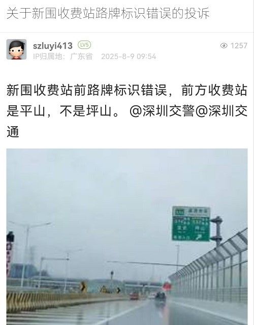 26. 帖文《關于新圍收費站路牌標識錯誤的投訴》