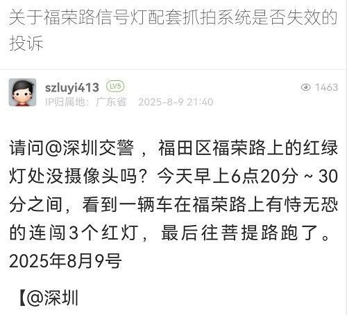 29. 帖文《關于福榮路信號燈配套抓拍系統(tǒng)是否失效的投訴》