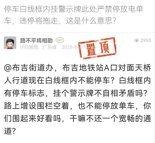 針對市民提及“白線框內(nèi)有停車標志,掛個警示牌不自相矛盾嗎?”的問題。經(jīng)核實,市民提及的問題處已被規(guī)劃為不可停放區(qū)域,禁停標識及鐵馬圍擋是為清除白線框施工而設置的臨時空間預留措施,對此給市民帶來的誤解以及不便,我們深表歉意。目前該處白線停車框及禁停標識已一并清除。