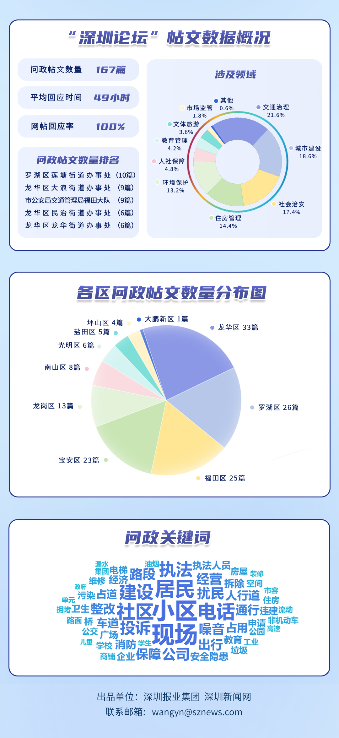 榜單帖文數(shù)據(jù)源自深圳論壇,均為網(wǎng)民點名希望涉事單位回應(yīng)的網(wǎng)帖,共涵蓋77個單位、167篇網(wǎng)帖。所采集帖文發(fā)布時間為2025年8月1日至8月31日,采集截止時間為2025年9月2日。