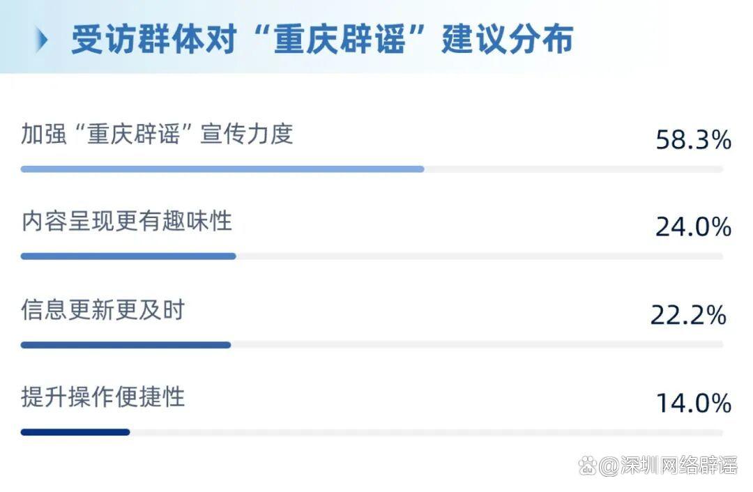 ·公眾對“重慶辟謠”的改進(jìn)訴求鮮明,加強(qiáng)宣傳力度占比58.3%,與8.4%的知曉率形成直接呼應(yīng)。